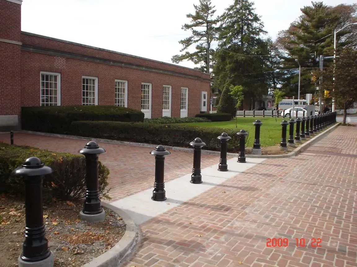 In addition to ornamental metal fences, we provide metal porch railings, hand railings, decorative bollards, and bumper posts. These posts are practically indestructible and will protect your property and people from uncontrolled vehicles. They will also keep vehicles from entering your property or damaging your lawn if desired.